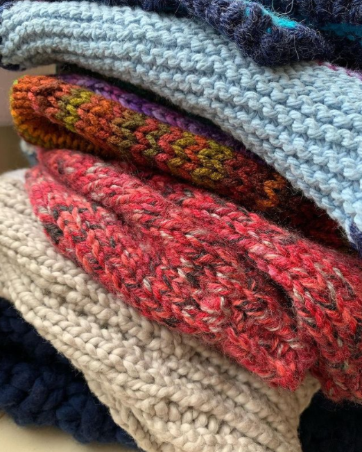 Handcrafted hats, scarves, masks and mittens are appreciated